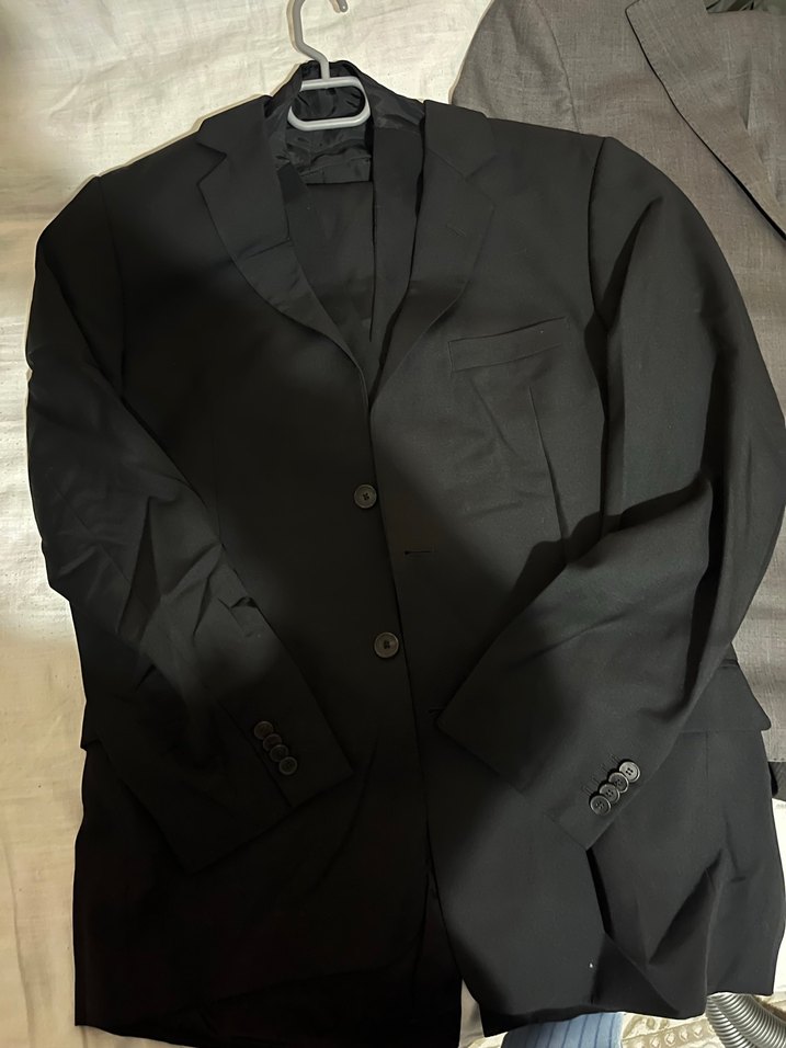 Düğmeli, normal kesim ve uzun kollu siyah erkek takım elbise, ofis kullanımı için uygundur. ️