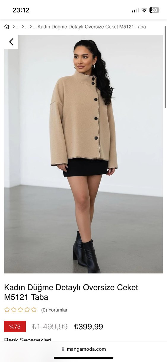 Bej deri kumaştan, düğmeli ve oversize kesime sahip kısa uzunlukta kadın ceketi. Uzun kollu ve yaka detaylı, gündelik kullanıma uygun. Sipariş vermek için www.mangamoda.com ✨