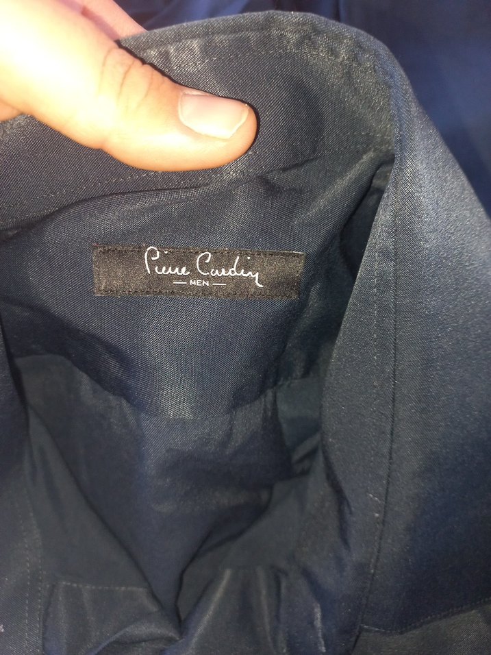 Düğmeli, parlak lacivert desenli, satenimsi kumaştan, normal uzunlukta ve midi kesim, düğmeli, uzun kollu, gömlek