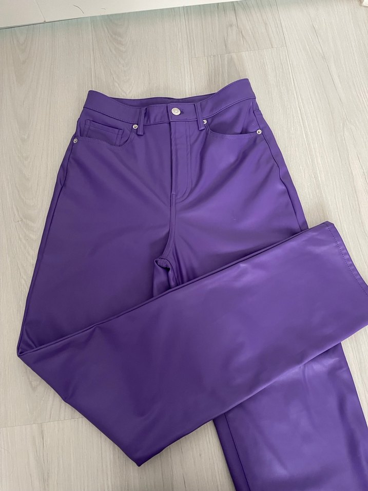 Düğmeli Parlak Mor Kadın deri Pantolon