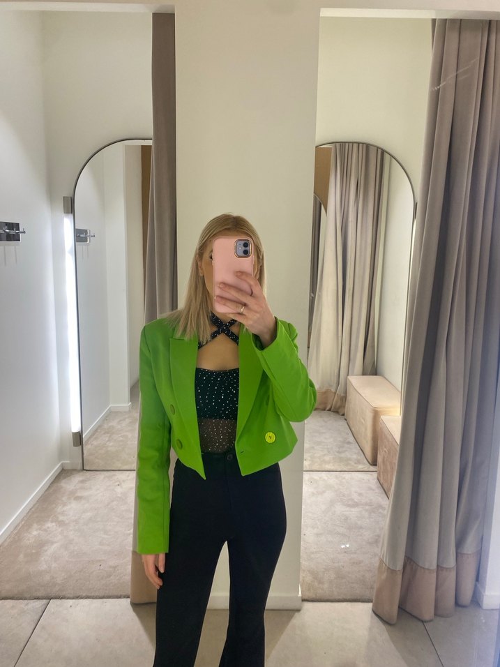 Düğmeli Parlak Yeşil Kadın Blazer Ceket