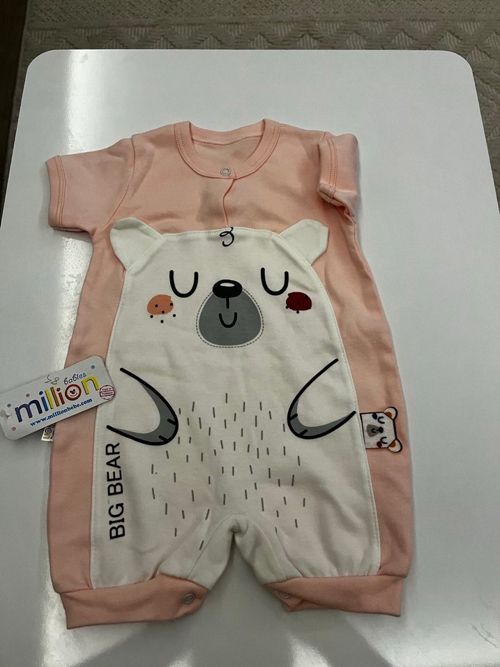 Düğmeli Pembe Baskılı Bebek Kız Tulum