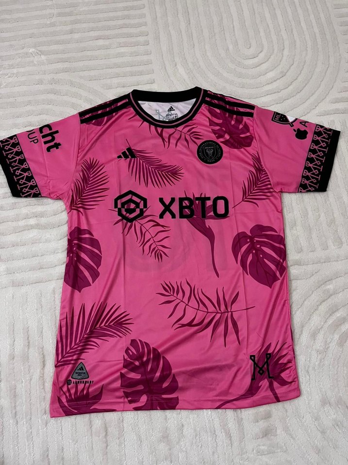 Düğmeli, koyu pembe renkte baskılı yaprak desenli, sentetik kumaştan erkek tişört. Yuvarlak yaka ve kısa kollu, rahat kesim outdoor kullanıma uygundur. Önünde 'XBTO' yazısı bulunur.