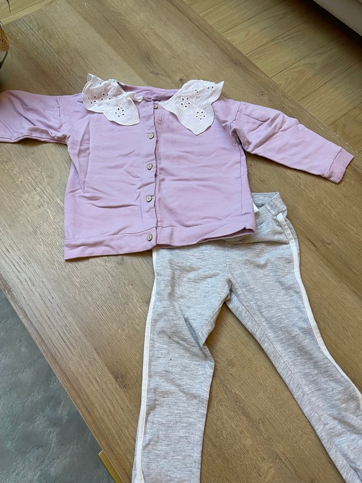 Düğmeli, beyaz yakalı pembe uzun kollu üst ve yanları beyaz çizgili gri pantolonlu bebek kız takımı. Lila renginde bebe yaka fistolu önden düğmeli hırka olarak da kullanılabilir sweatshirt olarak da 18 ay yazıyor ama 2/2.5 yaşa kadar çok rahat olur, ter temizliğini gibi hiçbir sıkıntısı yok leke , yırtık, sökük vs gıbı çok az sayılı kullanıldı, 24/36 aylık ince Pamuklu Tayt hediye birlikte fiyatıdır…