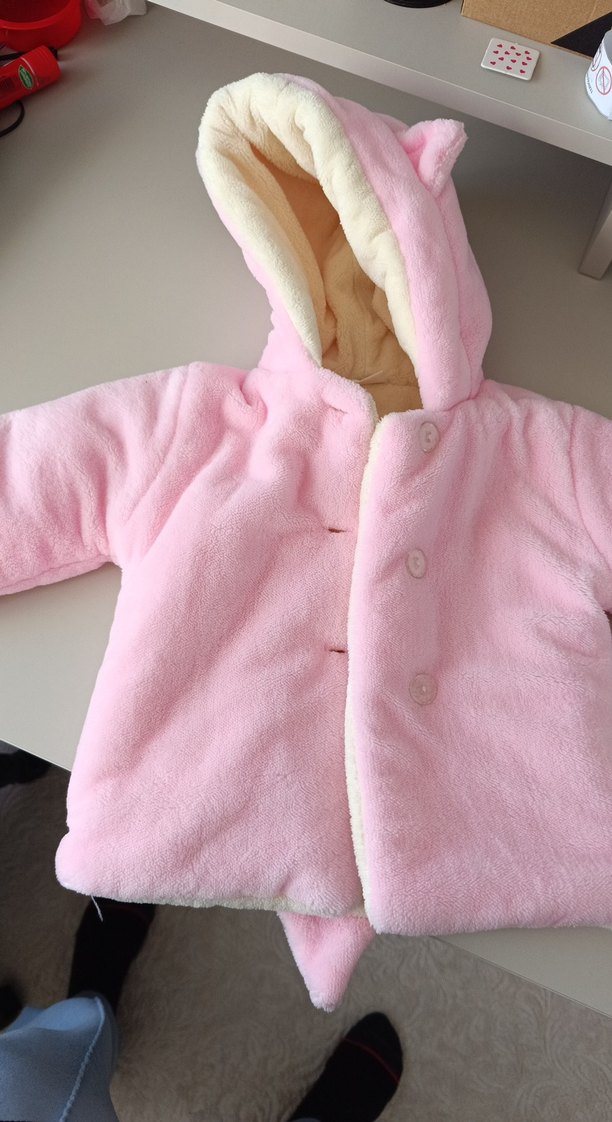 Düğmeli Pembe Bebek mont peluş