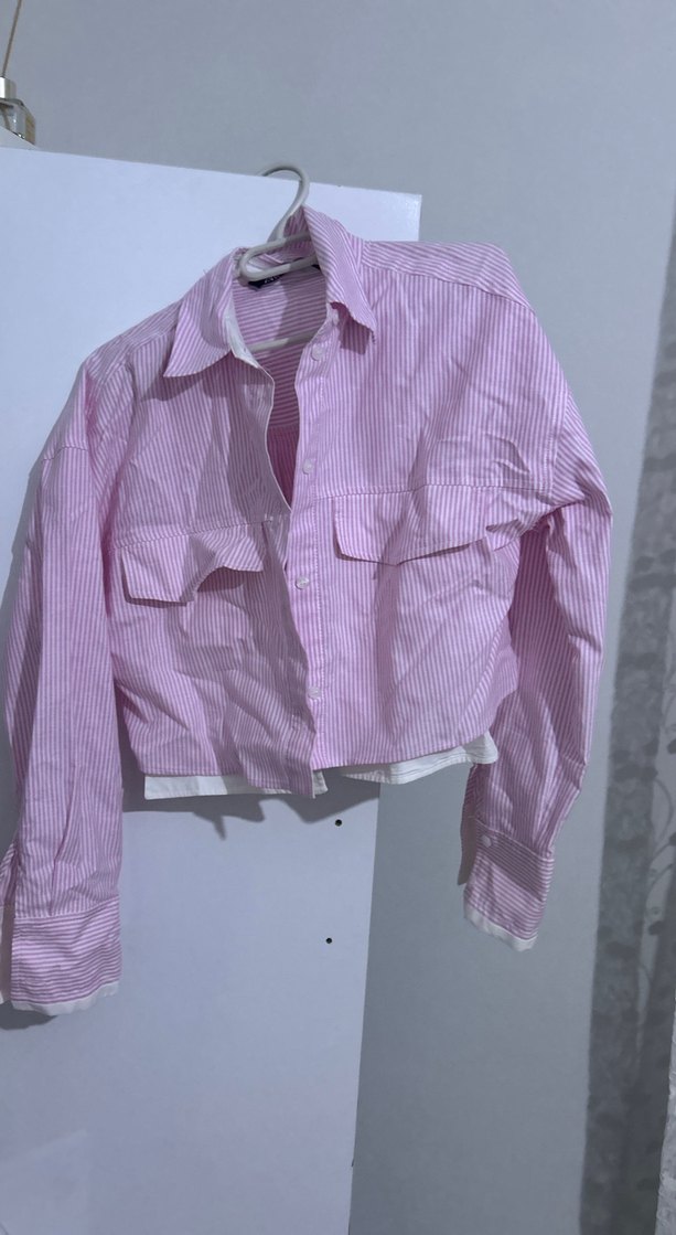 Pastel pembe gömlek, uzun kollu ve düğmeli. Regular kesim, yakalı ve iki cep detaylı, günlük rahat kullanım için uygundur.