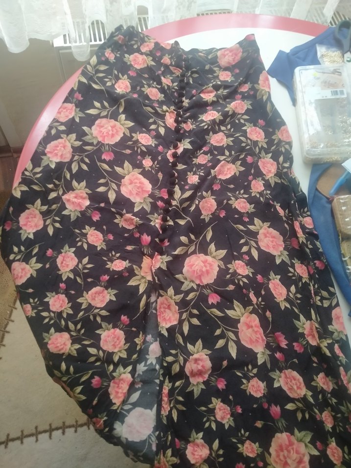 Düğmeli ön kısmı ve bol kesimiyle uzun etek, sentetik kumaştan, koyu pembe çiçek desenli, bohem tarz için uygun . Midi boy. Hiç giyilmedi.Zara.