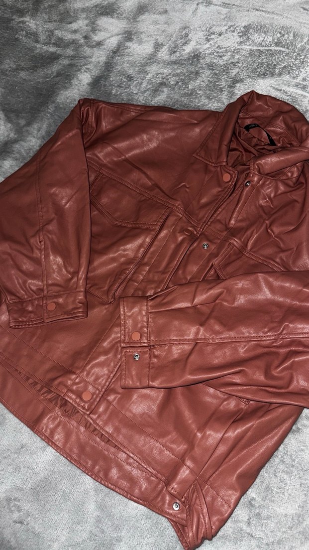 Düğmeli Pembe Deri Kadın Ceket