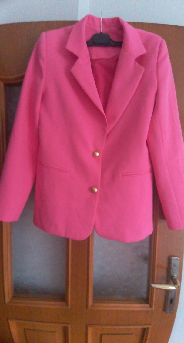 Kadınlar için düğmeli, yaka detaylı pembe blazer ceket. Normal kesim, uzun kollu ve midi boyda, yumuşak ve sıcak kumaştan yapılmıştır.