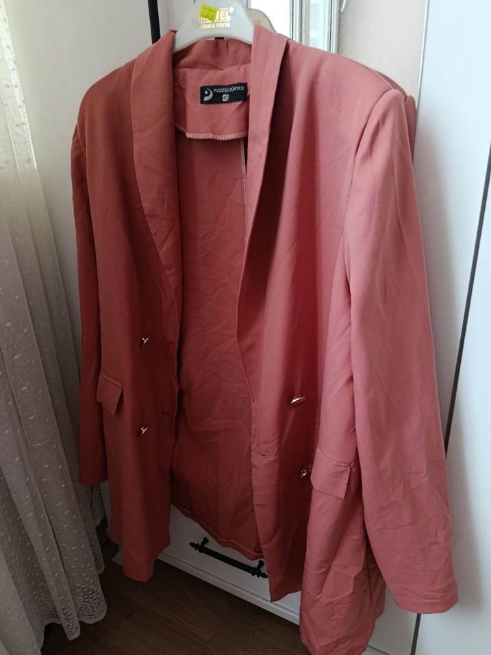 Pembe renkli, düğmeli ve şal yaka detaylı kadın blazer cekettir. Uzun kollu, midi boy ve ipeksi dokusuyla günlük ve iş tarzına uygundur.