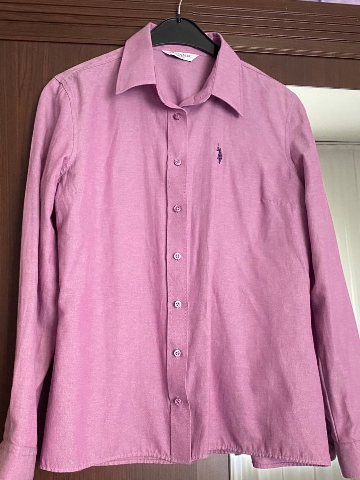 Uzun kollu, düğmeli ve gömlek yaka detaylı, pembe dokuma kumaştan kadın gömlek. rahat kesim, ofis ve günlük sokak stiline uygun.