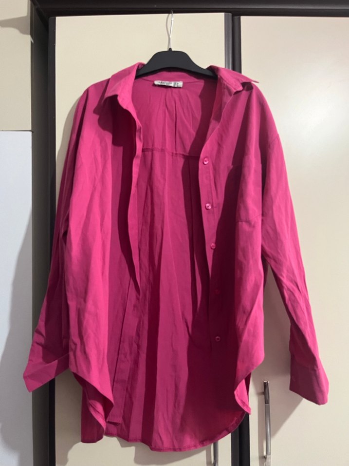 Düğmeli Pembe Kadın Gömlek