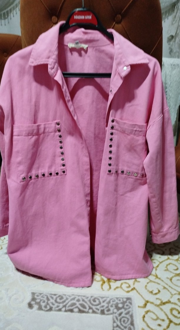Düğmeli Pembe Kadın kot Gömlek