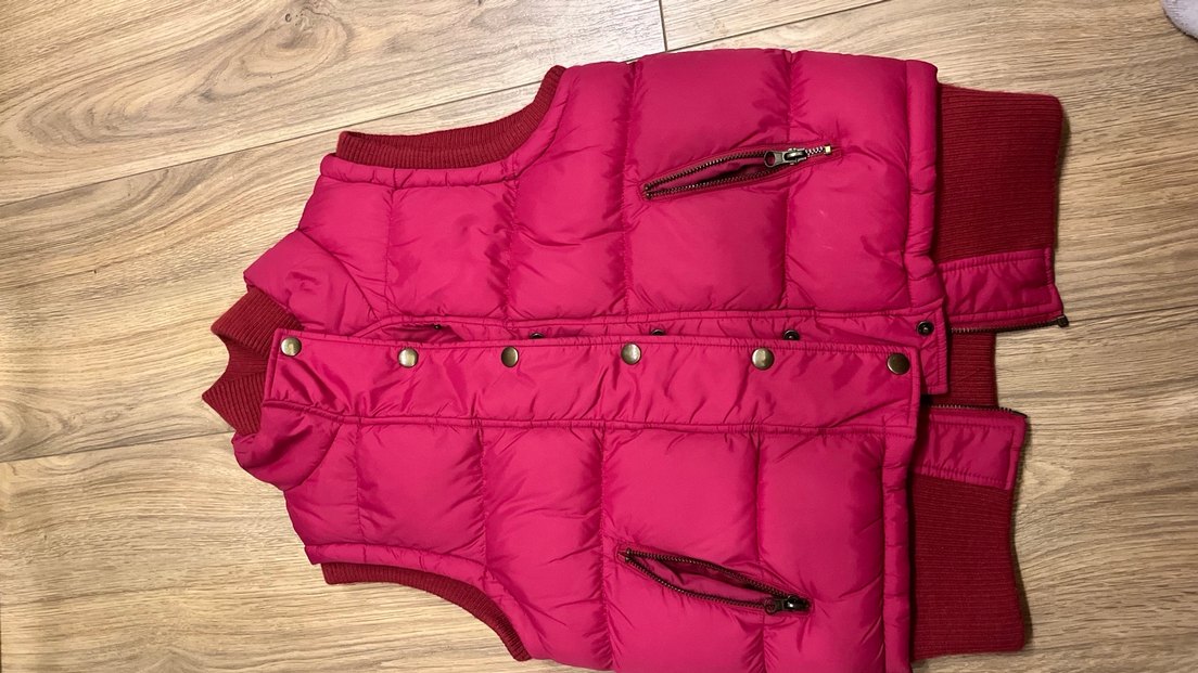 Pembe renkli, düğmeli ve fermuarlı ceplere sahip kadın yelek. Sentetik kumaştan, kolsuz ve vücuda oturan kesime sahiptir. Rahat ve renkli sokak stili, günlük kullanım için uygun.