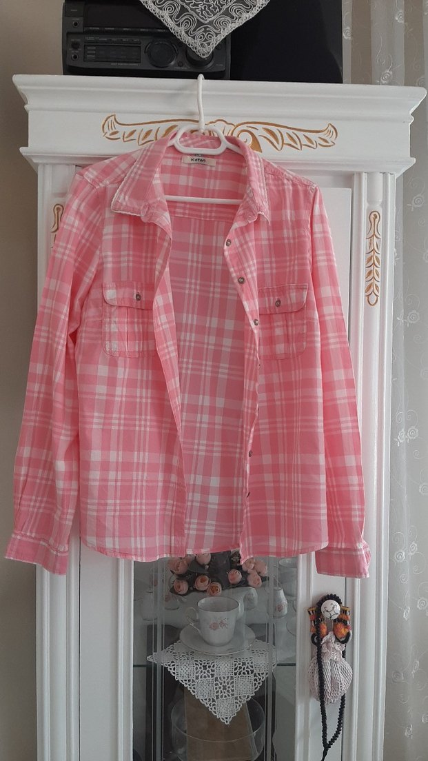 Düğmeli Pembe Kareli Kadın Gömlek