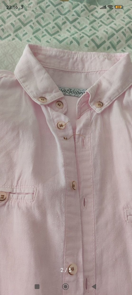 Düğmeli Pembe Keten çocuk Gömlek