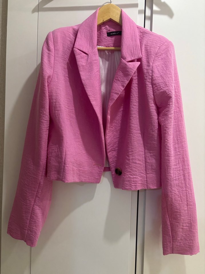 Düğmeli Pembe Keten Kadın Blazer Ceket