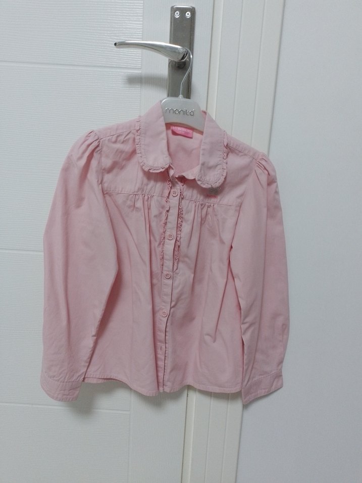 Pastel pembe keten gömlek, düğmeli ve yakalı. Uzun kollu ve bol kesimli, minimal ve trend casual tarzda.