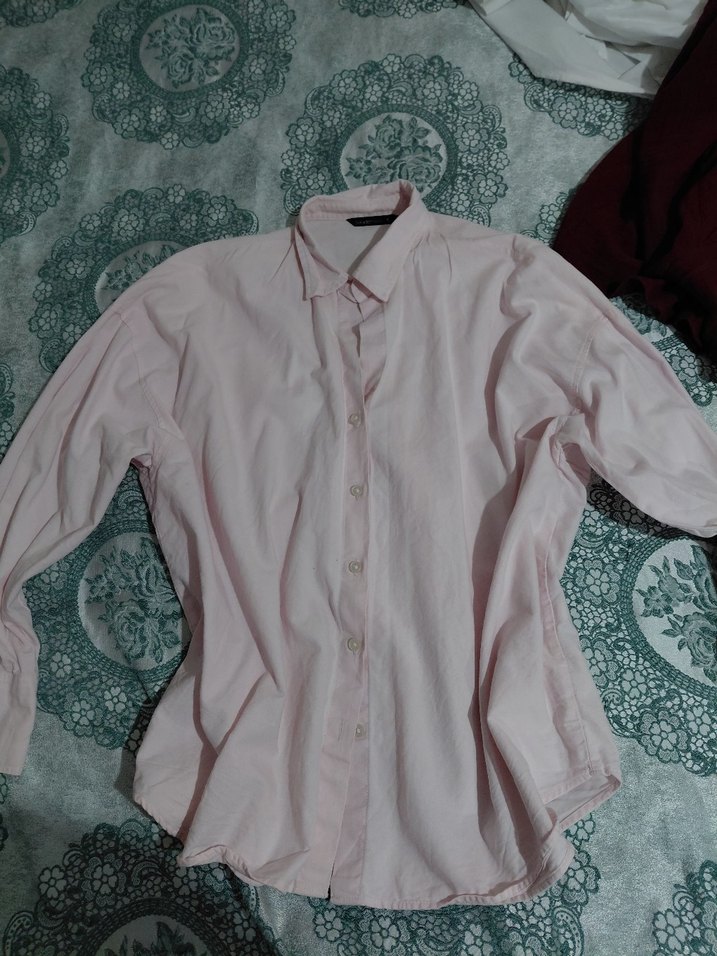 Pazarlık payı vardır. Bu pastel pembe keten gömlek, uzun kollu, yakalı ve düğmeli ön tasarıma sahiptir. Rahat kesimi ve normal boyuyla günlük sokak stiline uygundur.