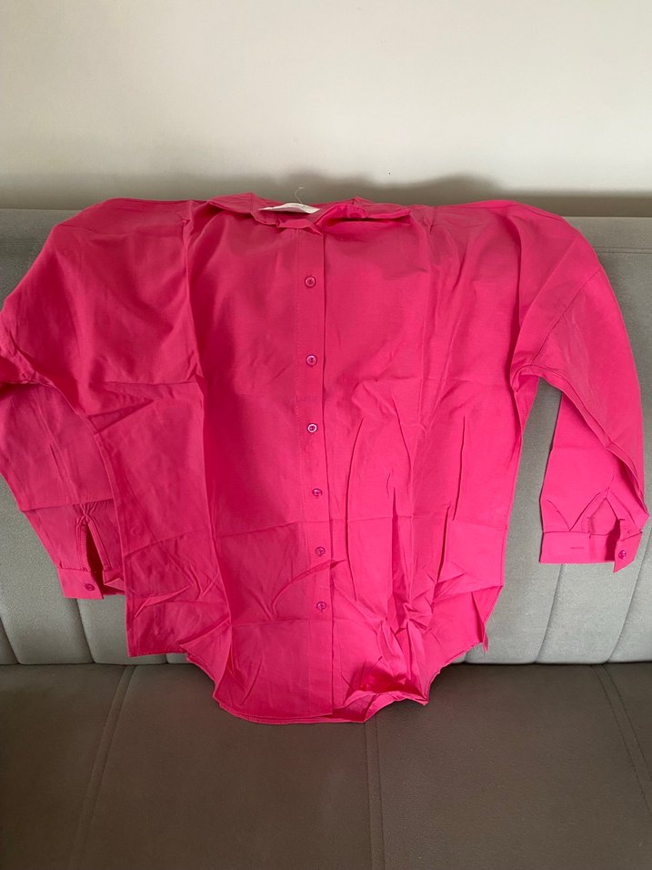 Pembe keten gömlek, uzun kollu, düğmeli ve yakalıdır. Salaş kesimi ve normal boyuyla günlük kullanım için uygundur. Minimalist sokak tarzı sunar.