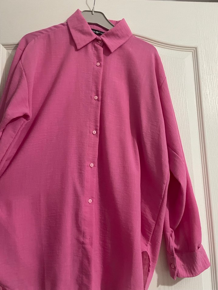 Düğmeli Pembe Keten Kadın Gömlek hiç giyilmedi