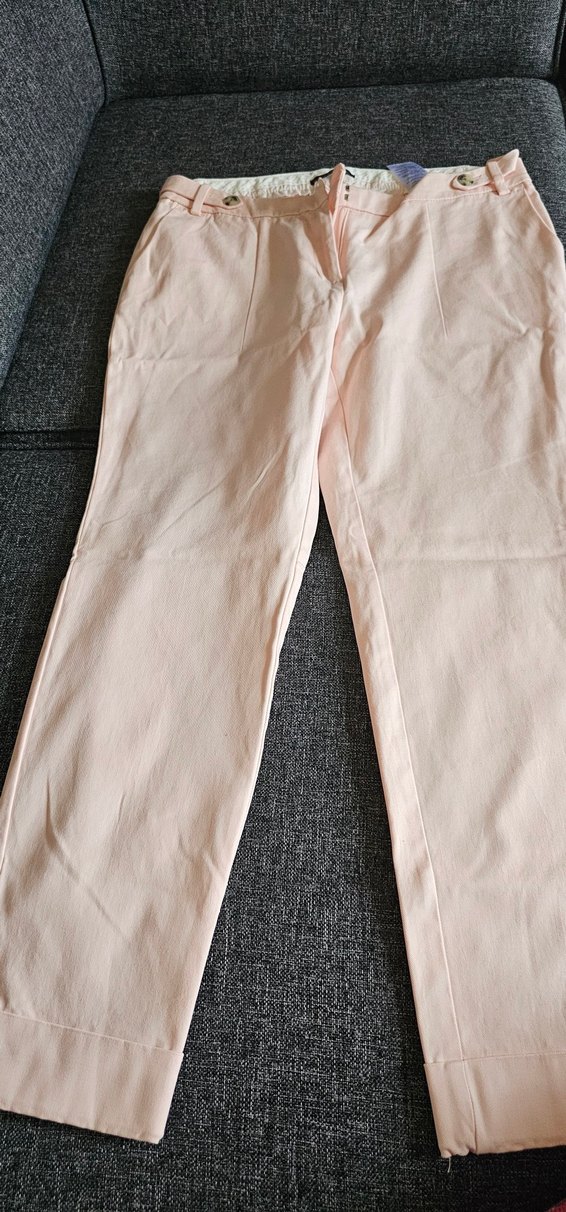 Düğmeli detaylara sahip pembe keten pantolon, normal boy ve rahat kesimlidir. Günlük kullanıma uygun, trend ve sade bir tarza sahiptir.