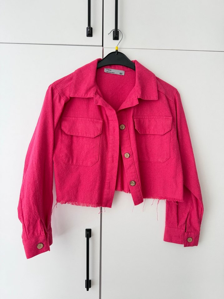 Düğmeli, uzun kollu pembe keten mini gömlek, notched lapel yakalı ve cep detaylıdır. Rahat kesimiyle gündelik sokak stiline uygundur.