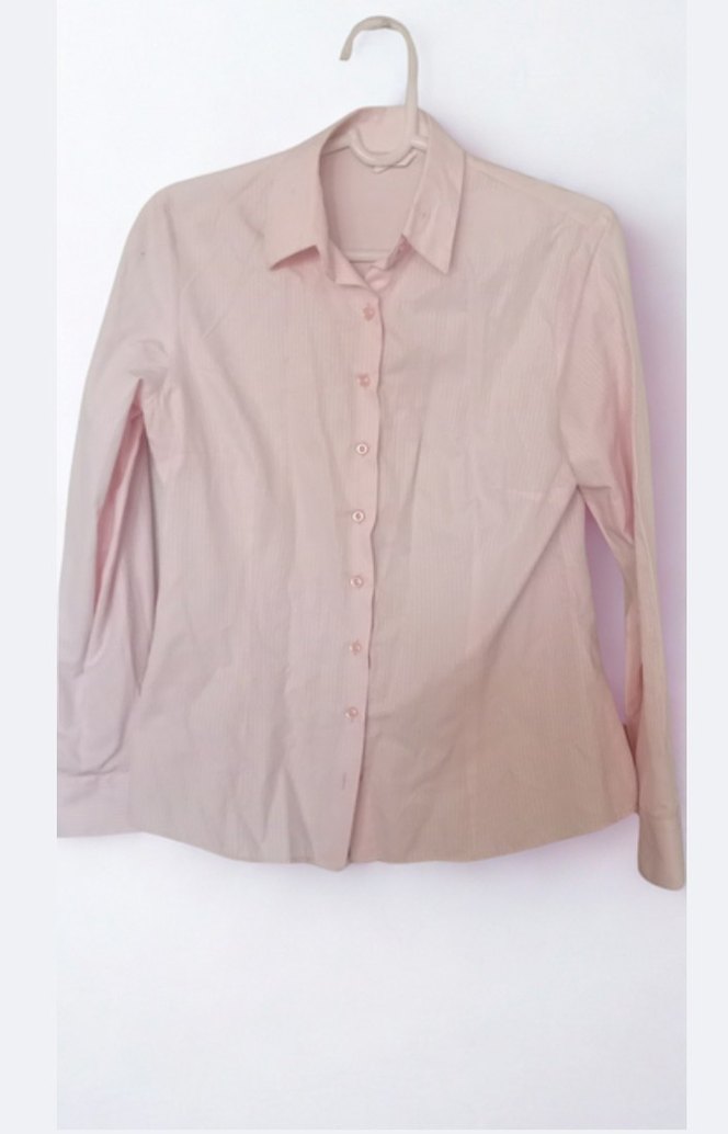 Pembe keten kumaştan yapılmış, düğmeli, uzun kollu ve yakalı gömlek. Normal boy ve regular kesime sahip, ofis için uygun.