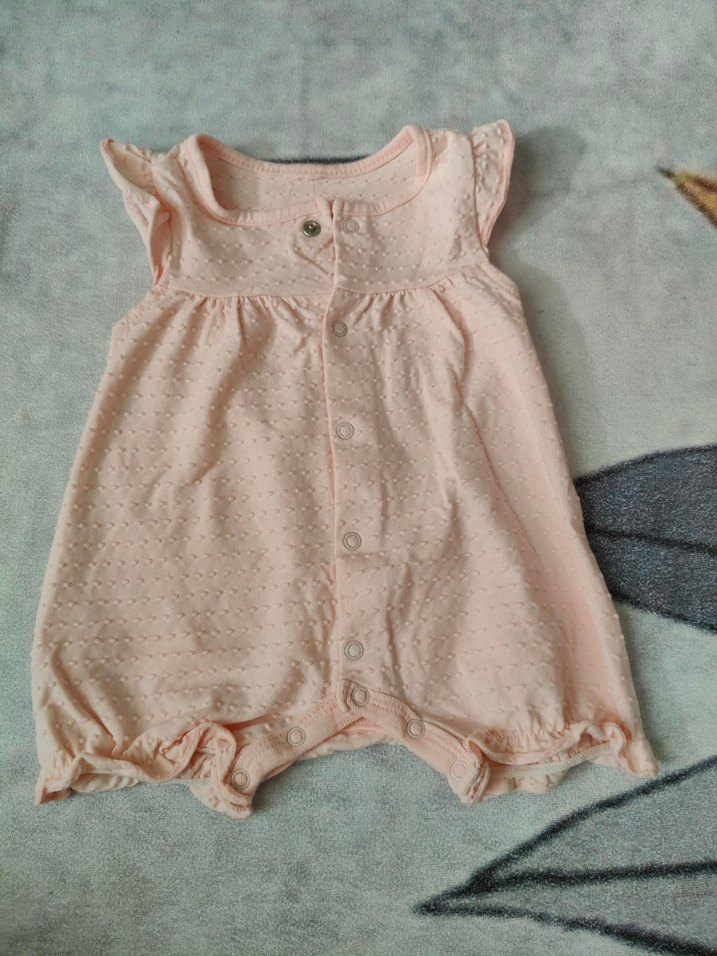 Düğmeli, pastel pembe renkte kız bebek tulumu. Fırfırlı kol detaylı ve yumuşak dokulu, rahat kullanım sağlar.