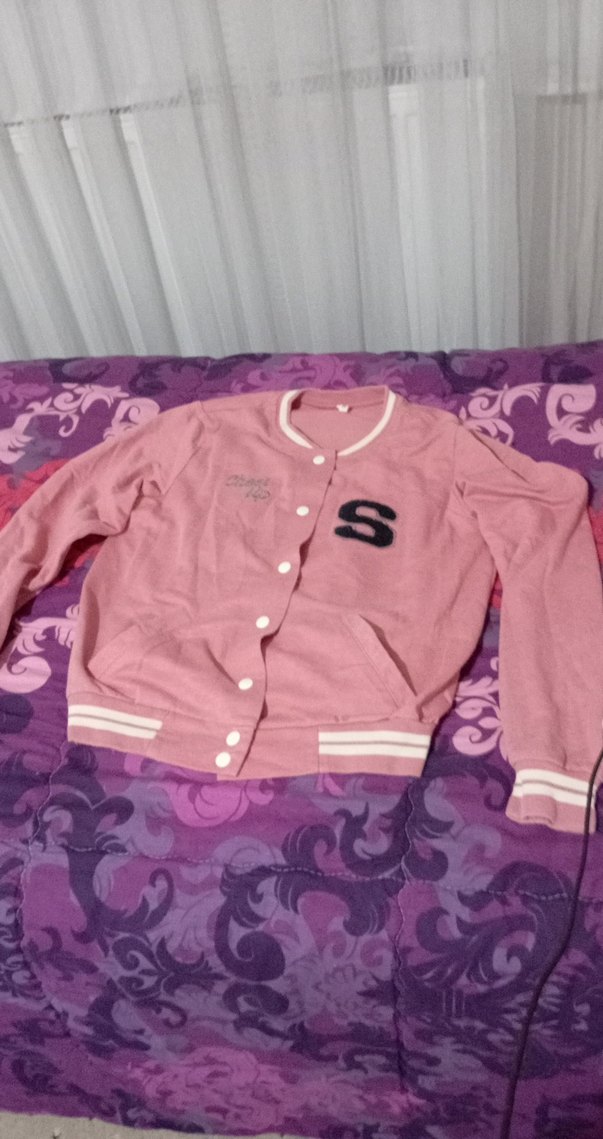 Düğmeli, uzun kollu, yuvarlak yaka ve bol kesim kız sweatshirtü. Pastel pembe renkte, yumuşak ve sıcak kumaştan, baskılı desene sahip.