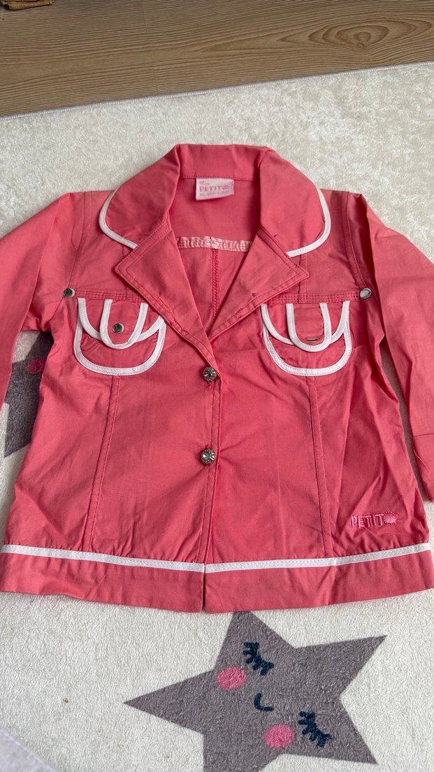 Düğmeli Pembe Kız Ceketi ve pantolon takım