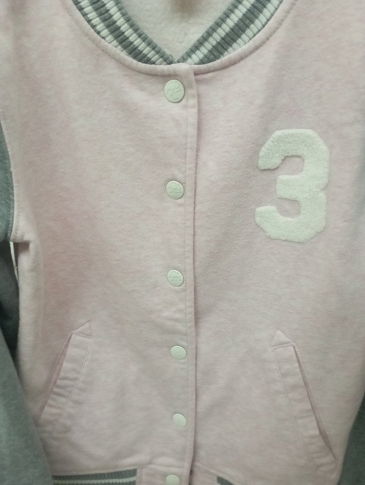 Düğmeli, yuvarlak yakalı, pastel pembe renkte, rahat kesim kız çocuk ceketi. Yumuşak ve sıcak kumaştan, üzerinde '3' numarası bulunur. marka temsili