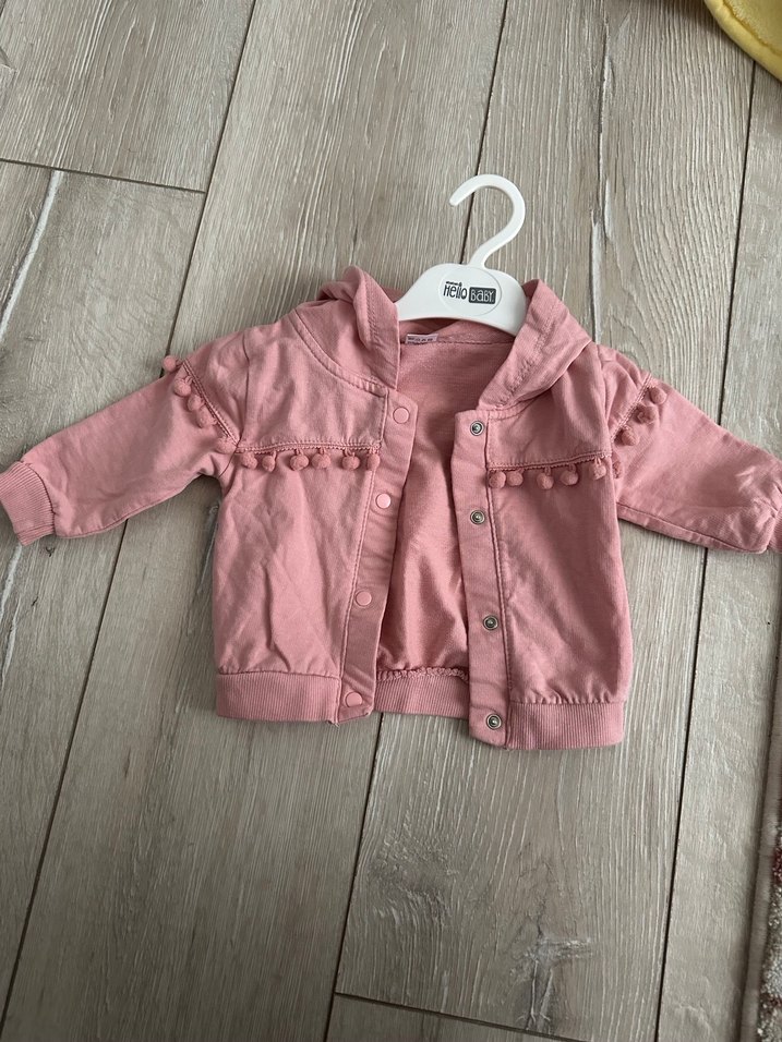 Yumuşak ve sıcak kumaştan, düğmeli, uzun kollu, bol kesim pembe kız çocuk hırkası. Sade görünüm için ponpon detayları bulunur.