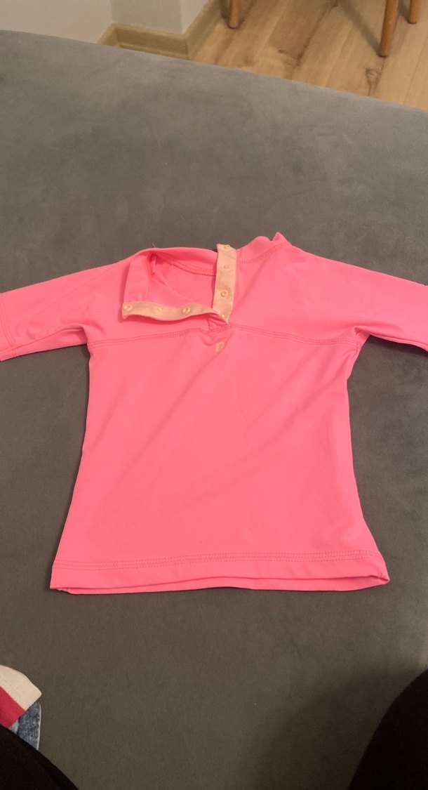 Düğmeli, yakalı ve uzun kollu, pastel pembe renkli, sentetik kumaştan kız çocuk gömleği. Sade ve sokak stiline uygun.