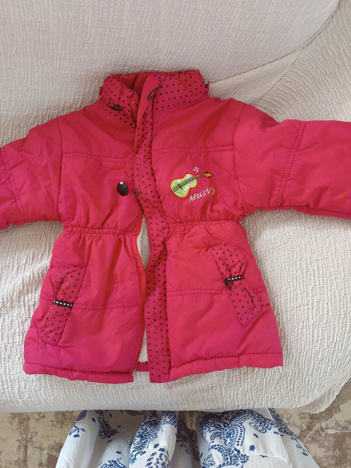 Düğmeli ve kesik yaka detaylı, yumuşak ve sıcak kumaştan yapılmış pembe renkli, desen içermeyen, sokak stili kız çocuk montu.şabkası kayıp