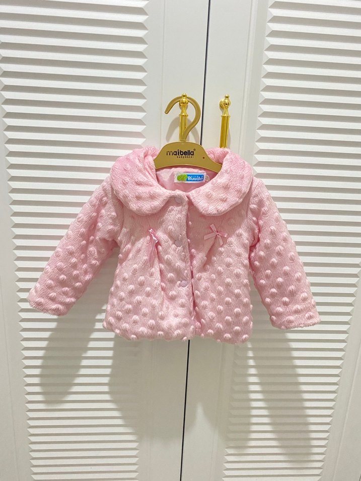 Düğmeli Pembe Kız Çocuk Polar Ceket