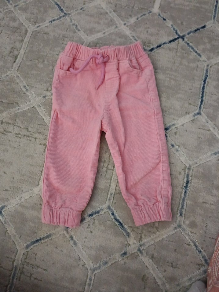 Düğmeli detaylara sahip, yumuşak ve sıcak kadife kumaştan yapılmış pembe kız çocuk rahat kesim pantolon. Pastel ton hafif bir dokunuş katıyor.
