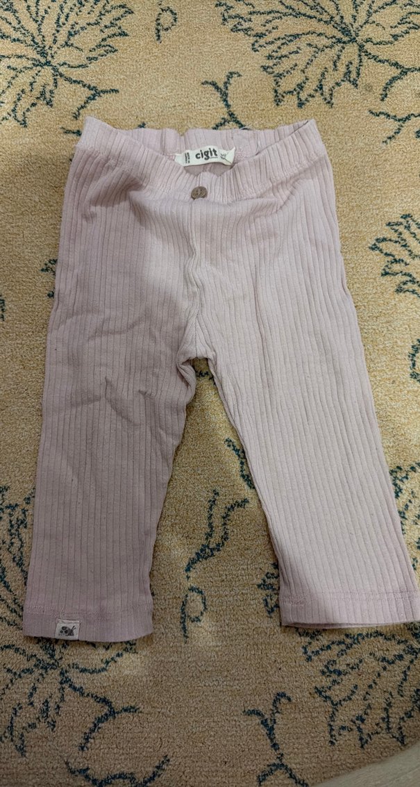 Yumuşak pamuklu, düğmeli ve fit kesim pembe kız çocuk taytı. Pastel ton ve fitilli dokusu trend, rahat bir görünüm sağlar.