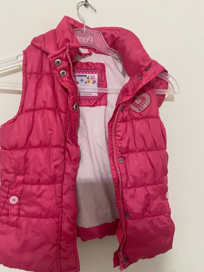 Düğmeli, yakalı, pembe kız çocuk yeleği, yumuşak ve sıcak kumaştan, dar kesim ve kolsuz tasarımda, rahat sokak stili için uygundur.