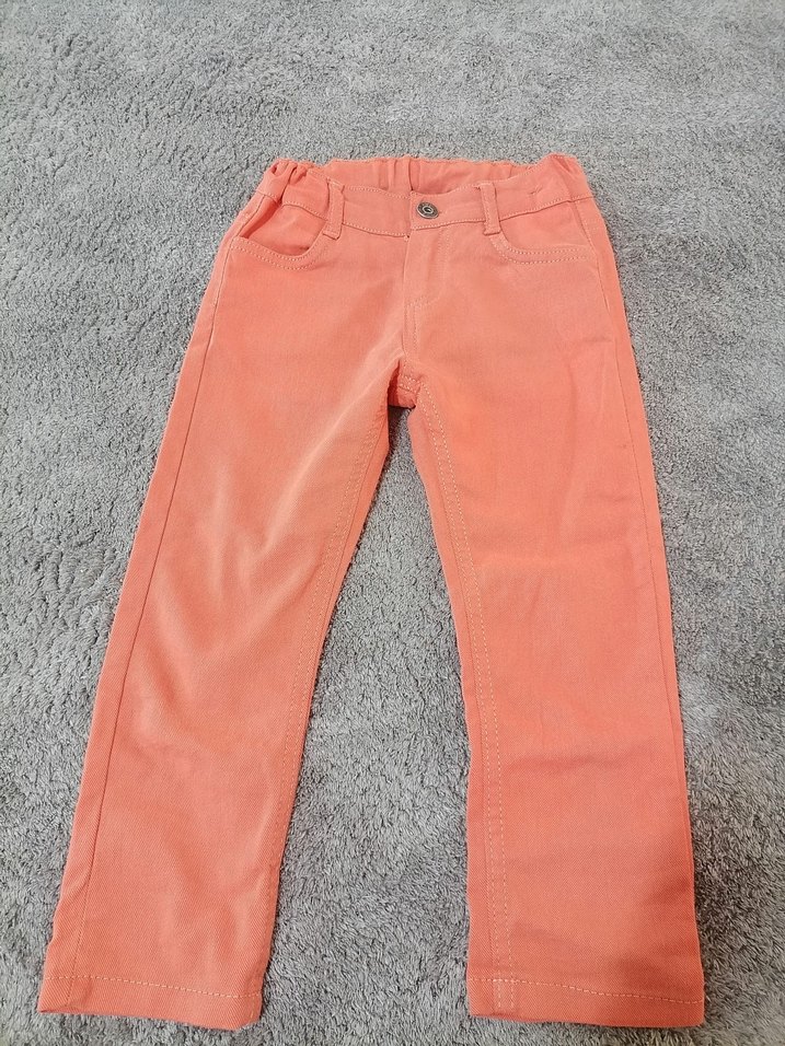 Düğmeli kapamalı, düz desensiz, yumuşak ve sıcak kumaştan yapılmış pembe renkli kız pantolonu, regular fit.