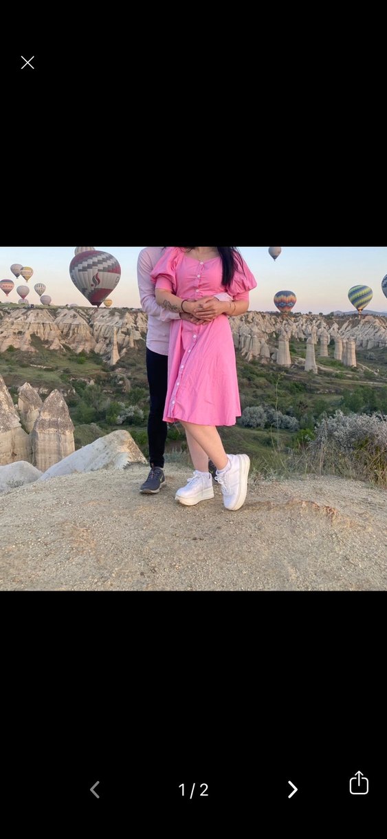 Düğmeli Pembe Midi Elbise