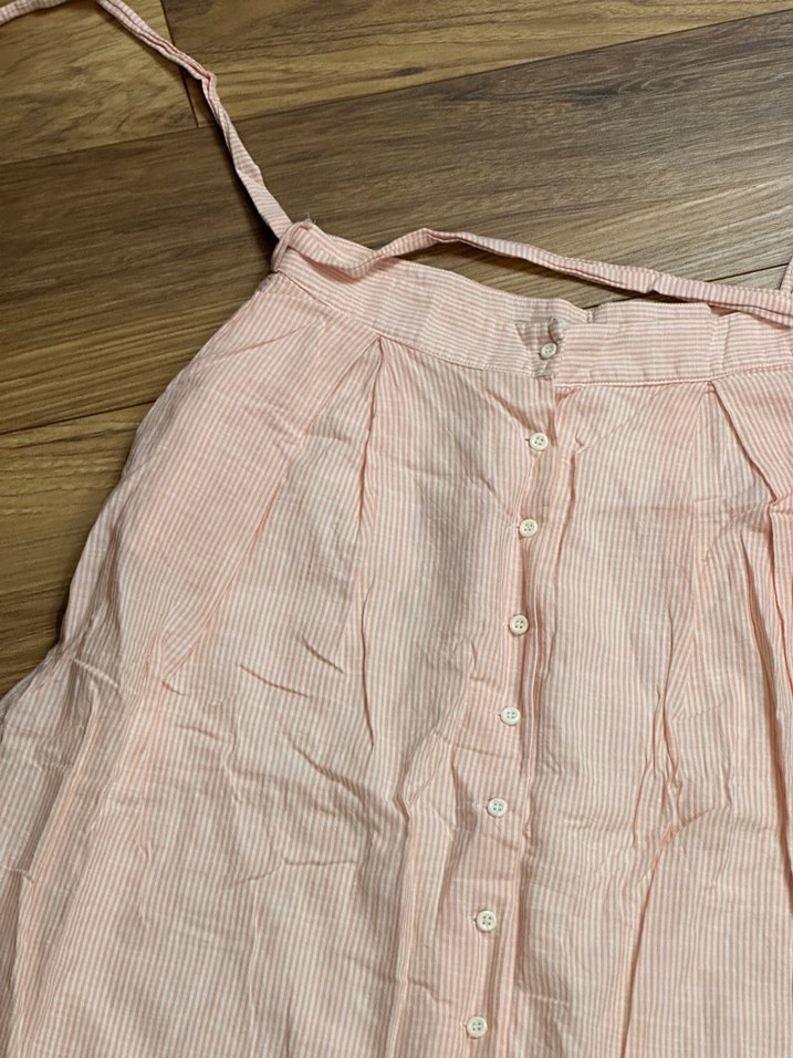 Pembe midi uzunlukta, düğmeli ve bol kesim hamile eteği. Yumuşak keten kumaştan yapılmıştır, günlük kullanım için bohem tarz sunar.