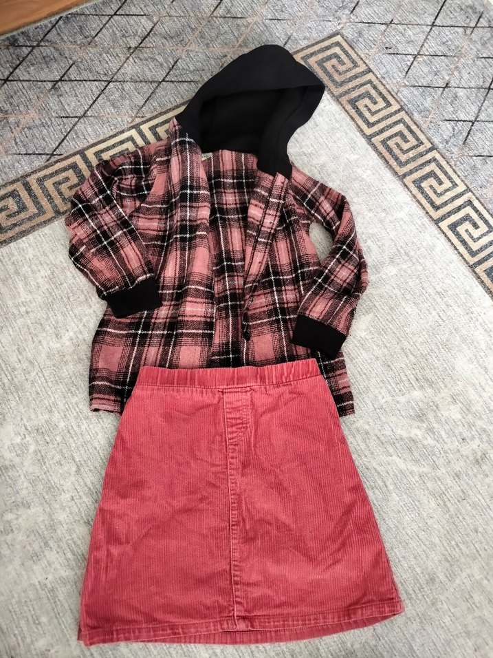 Düğmeli, pembe etek