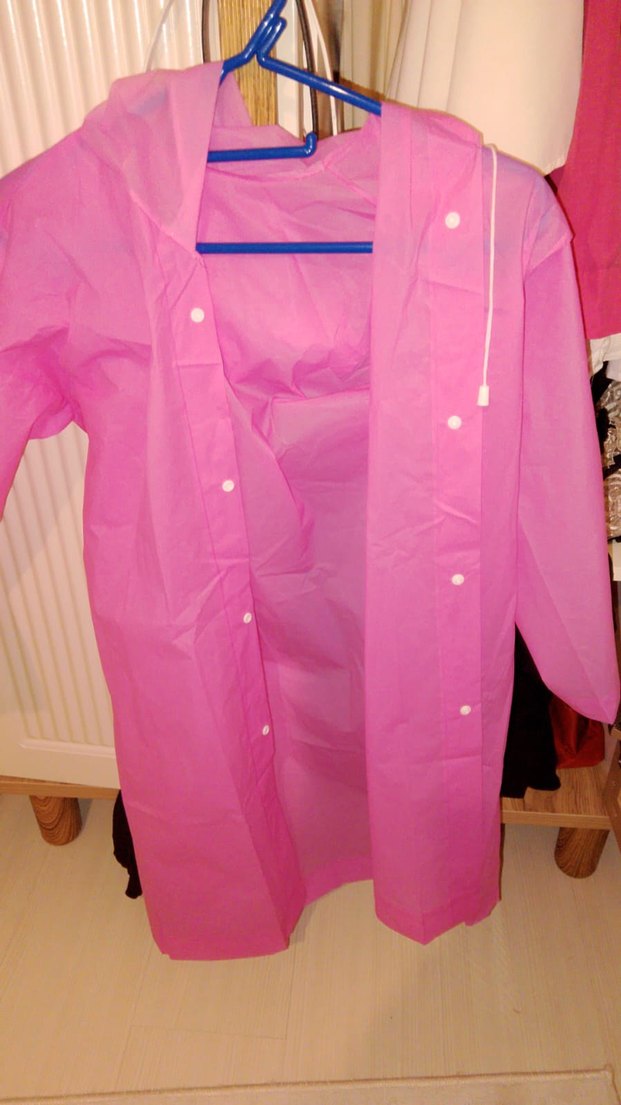Düğmeli ve çıtçıtlı pembe midi yağmurluk, notlu yaka ve uzun kolludur. Sentetik kumaştan, rahat ve bol kesimdir. ️