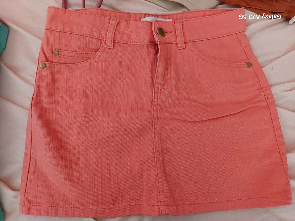 Düğmeli, pembe tonlarında, sentetik kumaştan yapılmış, dar kesim mini etek, gündelik sokak stiline uygundur. kullanılmadı. sıfır ürün
