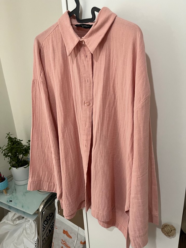Düğmeli Pembe müslin Kadın Gömlek