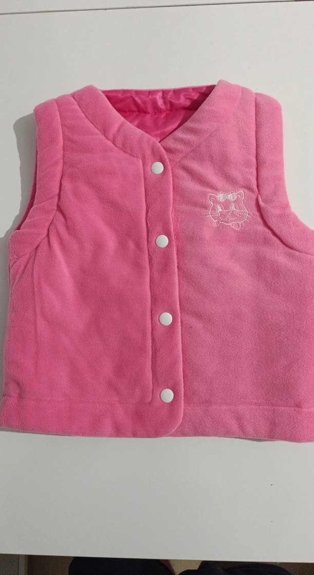 Çift Taraflı Düğmeli, yakalı ve nakışlı pembe kız yeleği, sentetik kumaştan olup, renkli detaylarıyla trend sokak giyimine uygundur. 3 Yaş