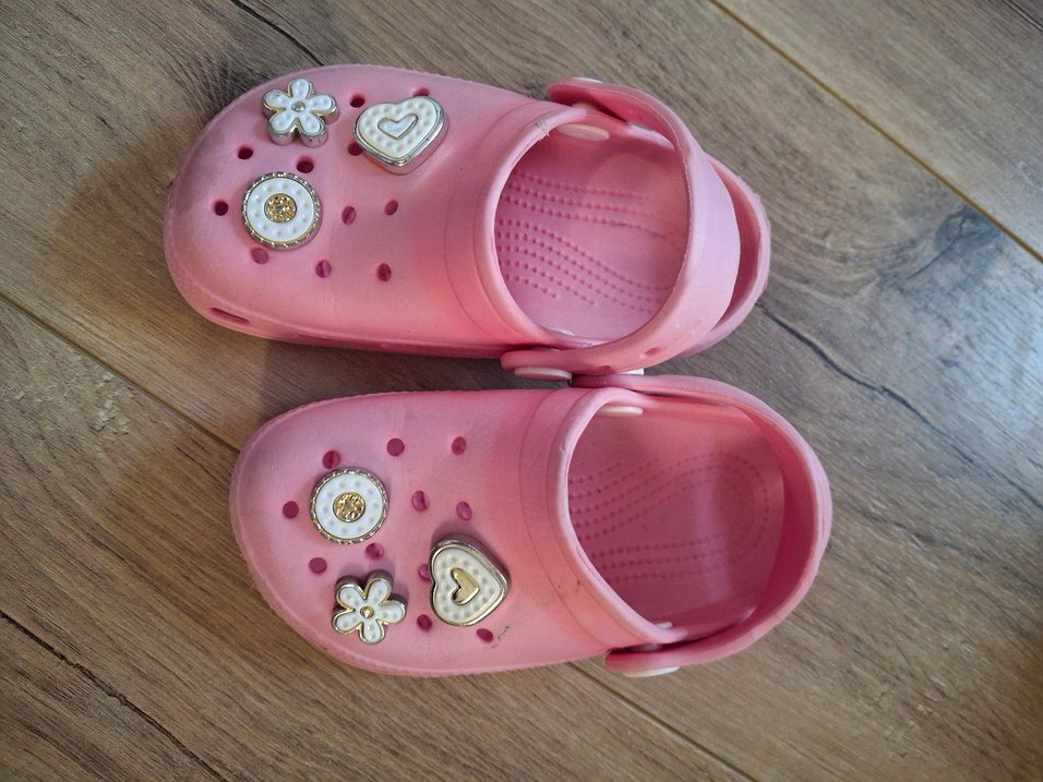 Düğmeli bantlı, pembe kauçuk kız terlikleri, pastel renklerde nakışlı çiçek ve kalp desenleriyle bohem tarzı yansıtıyor.