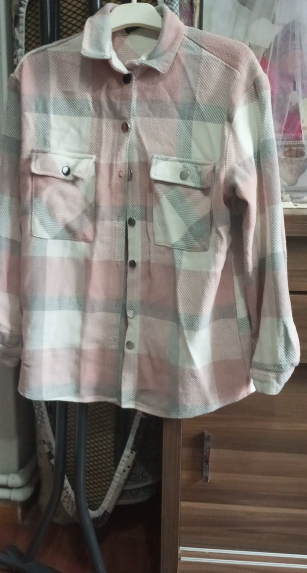 Düğmeli, bol kesim pembe pamuklu kadın gömlek. Uzun kollu, notched lapel yaka ve tie-dye desenli, rahat sokak stili için uygundur.