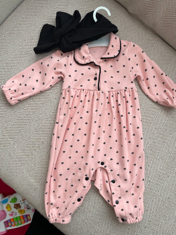Düğmeli Pembe Puantiyeli Kız Bebek Tulum